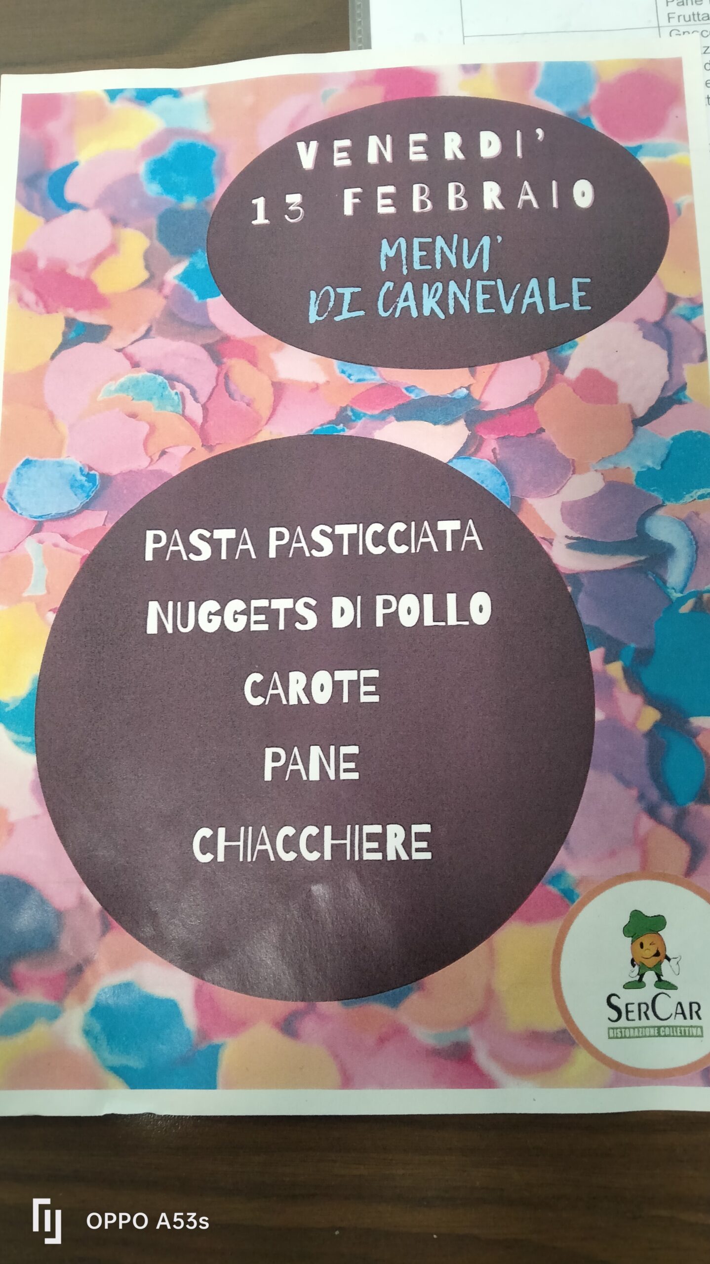 Menù speciale di Carnevale per il giorno 13.02.2026