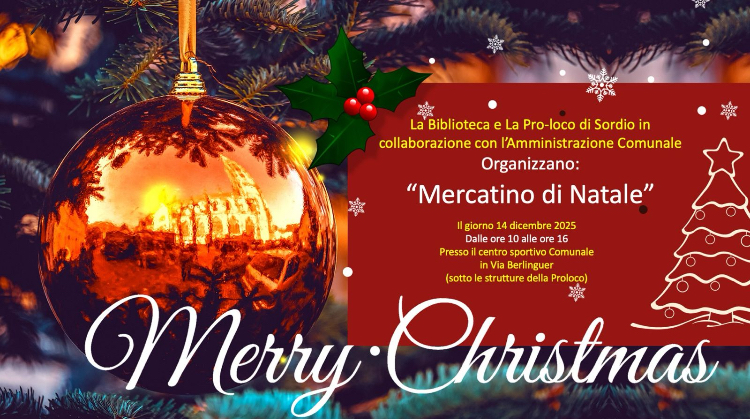 La Commissione Biblioteca di Sordio in collaborazione con la Pro-Loco, organizza i "Mercatini di Natale 2025" presso il Centro Sportivo Comunale, dalle ore 10.00 alle ore 16.00